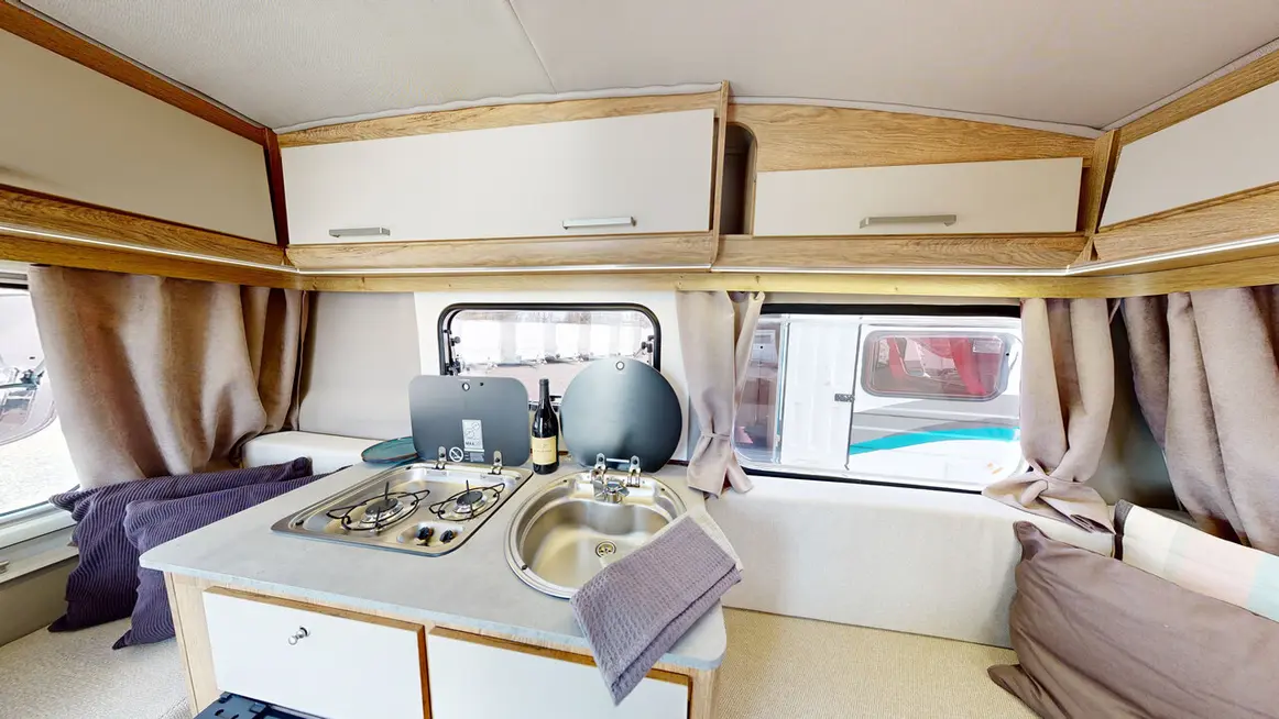 • Durchdachte Ausstattung: Jeder Wohnwagen Niewiadow bietet eine praktische und komfortable Innenausstattung für bis zu drei Personen.
